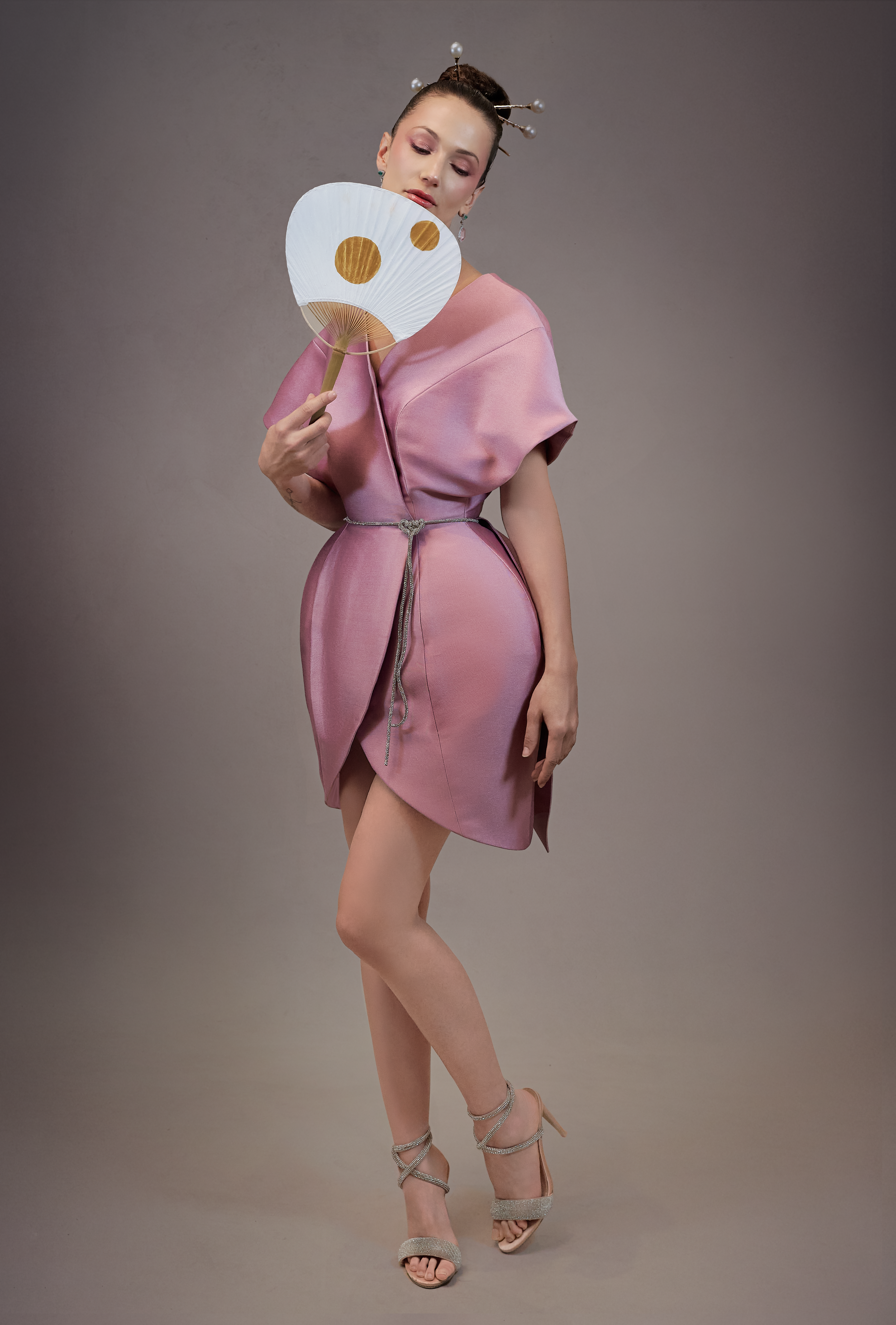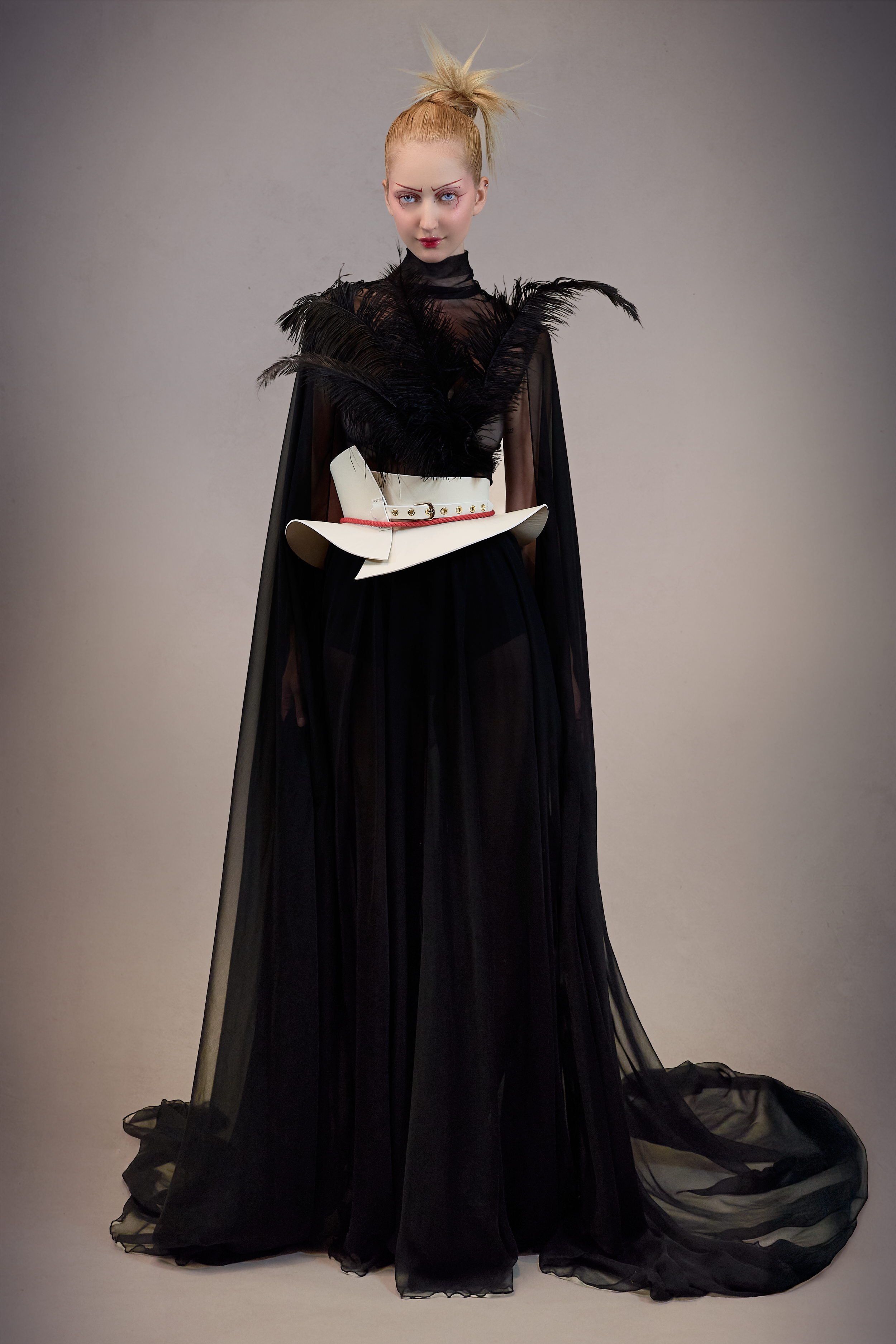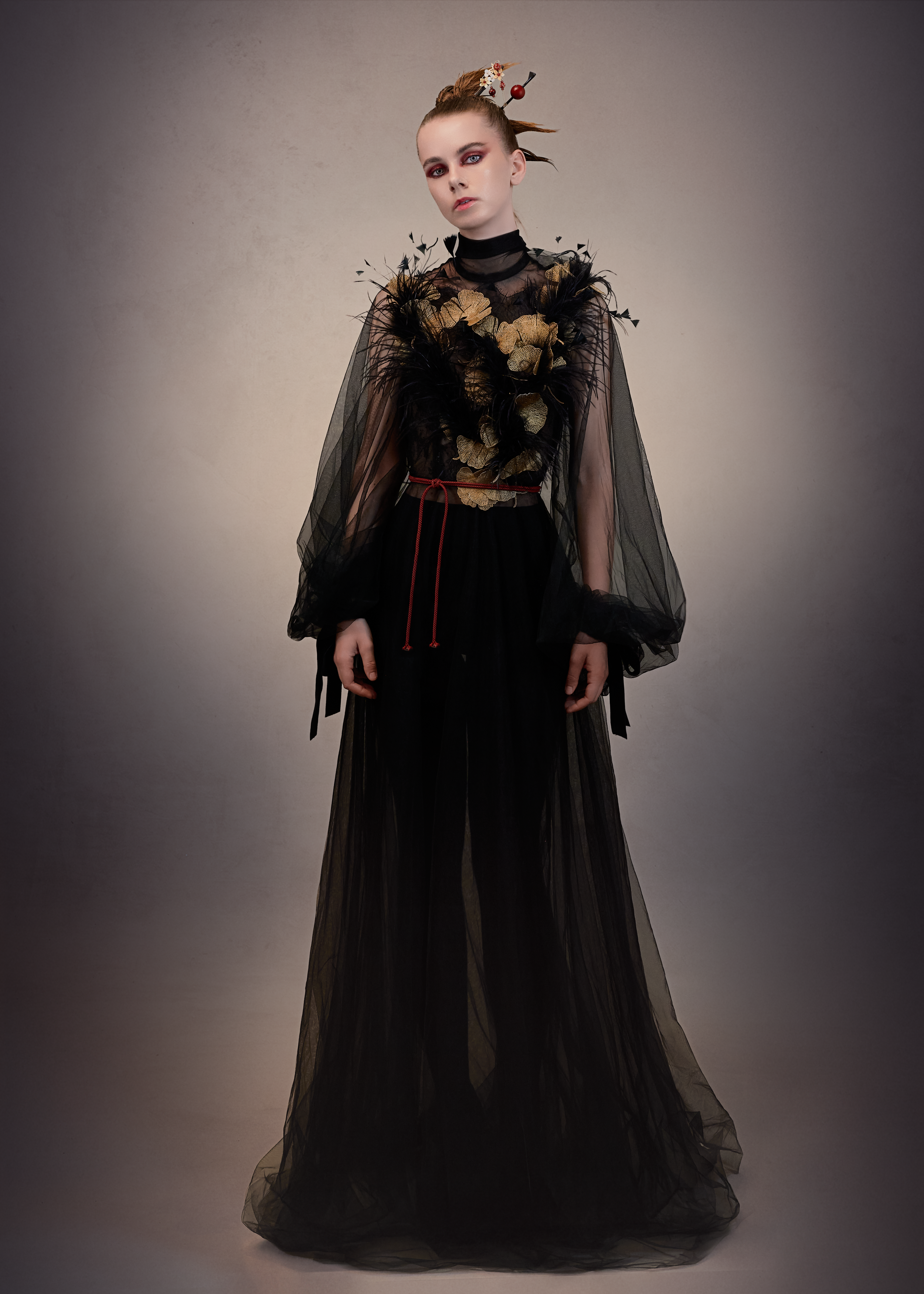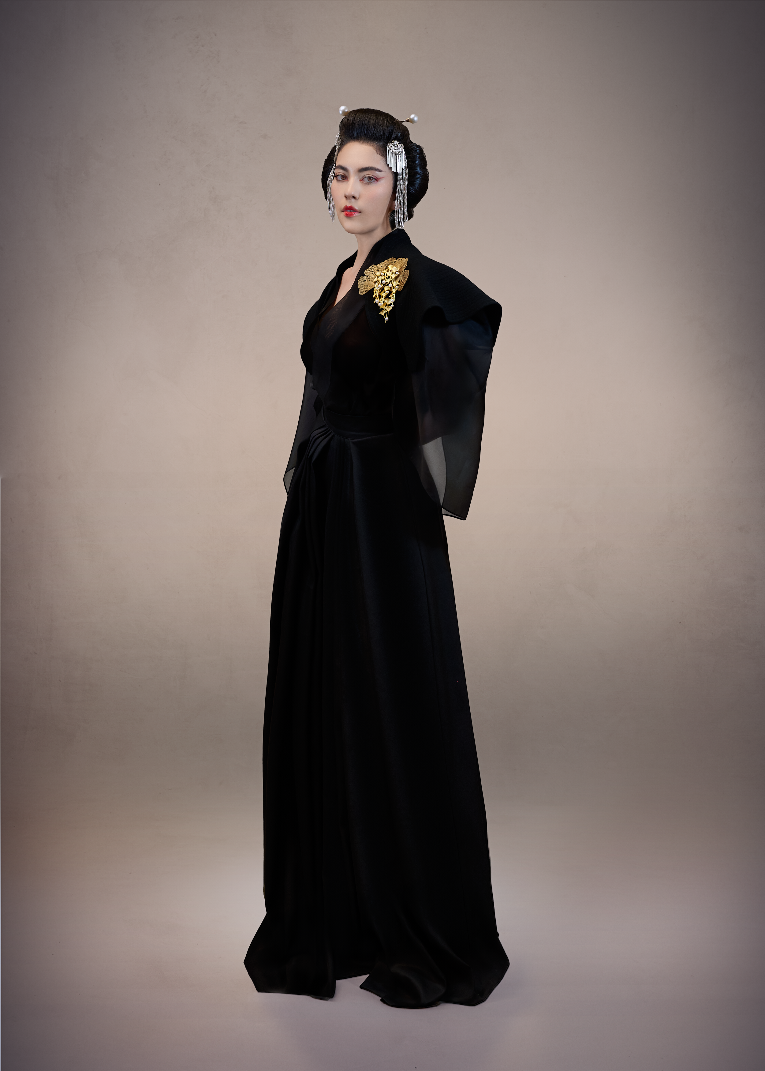 Au cœur de cette collection réside également Murasaki Shikibu, une pièce écrite par mon maître de danse et de théâtre, qui a éveillé en moi une fascination profonde pour ce pays. Entre la Haute Couture, Madama Butterfly de Puccini et la musique du shamisen, je puisais mon inspiration dans ses structures et ses silhouettes-une influence qui a marqué ma manière de créer depuis des années.