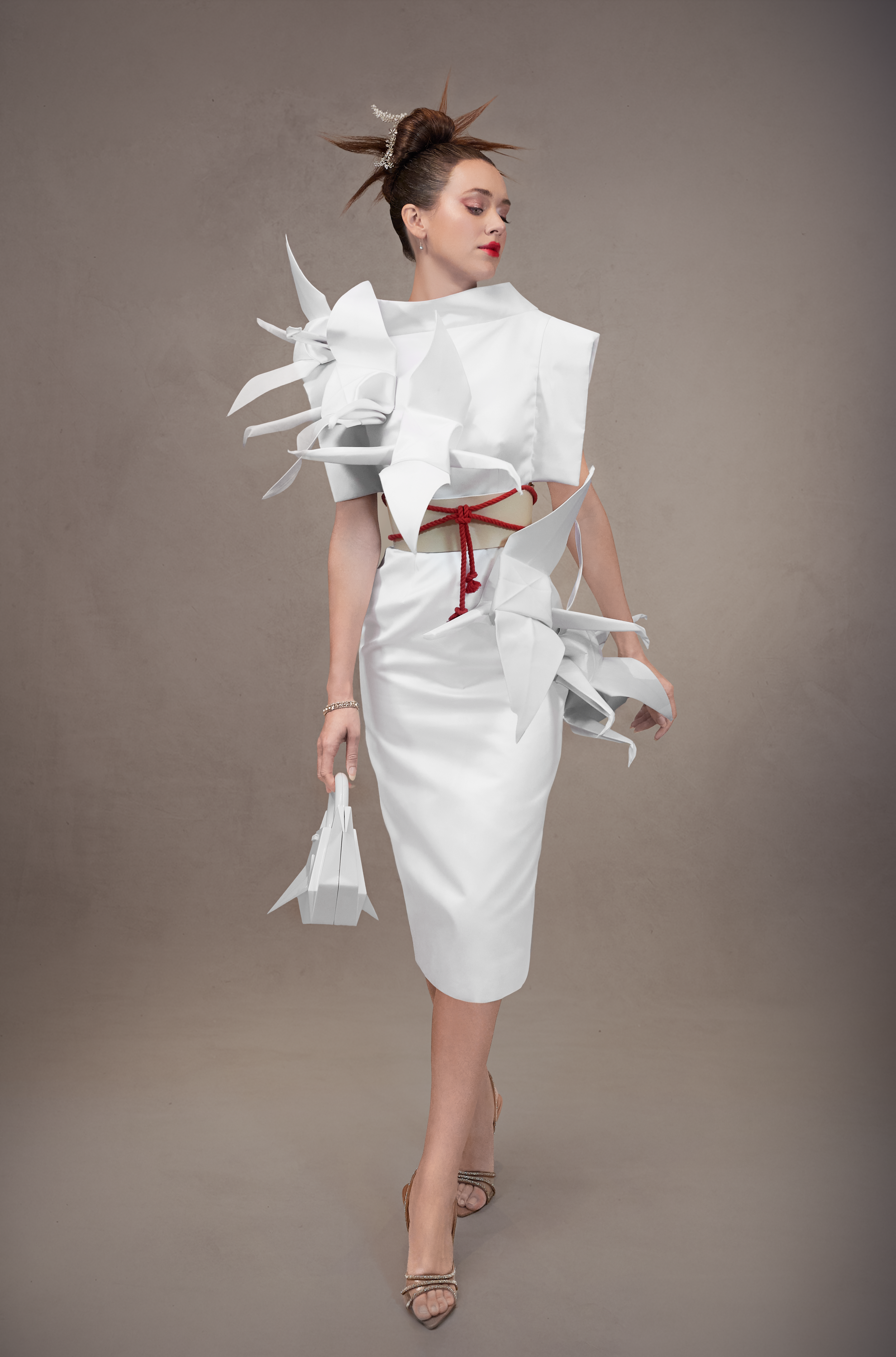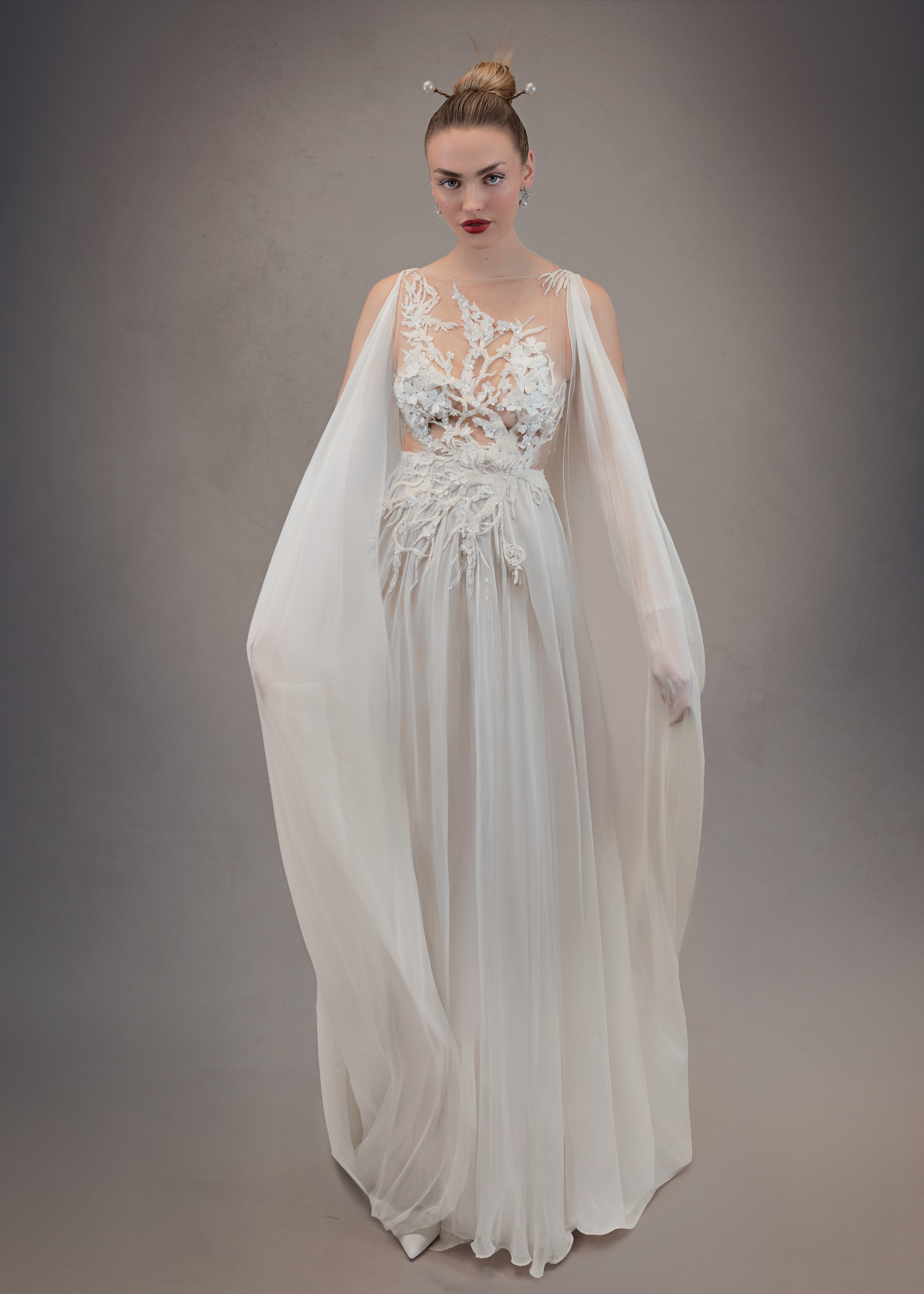 Chaque création de cette collection a été conçue et réalisée artisanalement, entièrement façonnée à la main avec le savoir-faire de la Haute Couture.